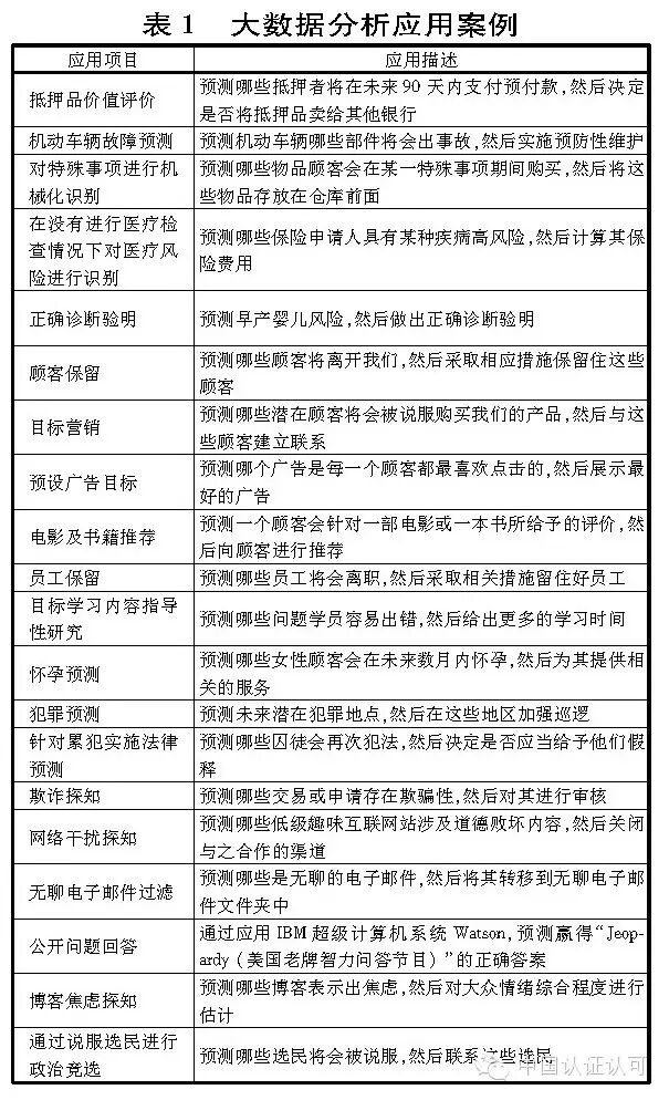 質(zhì)量專業(yè)工作者必須幫助其所在組織獲取更多數(shù)據(jù),并通過大數(shù)據(jù)分析來(lái)協(xié)助做出正確決定(如表1中所展示大數(shù)據(jù)分析應(yīng)用案例)。